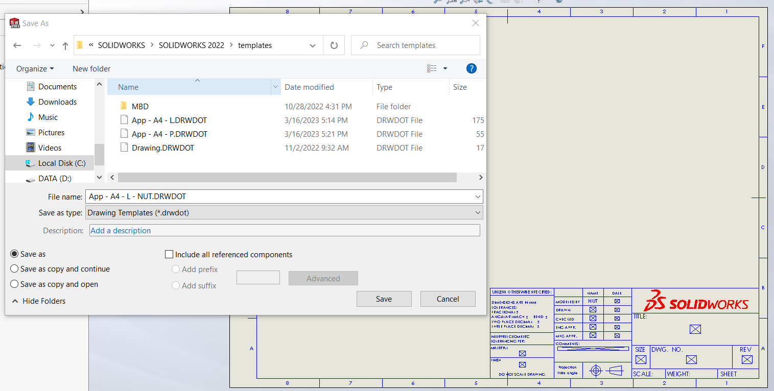 *āļŦāļĄāļēāļĒāđāļŦāļุ : āđāļāļĨ์ Sheet format āđāļĨāļ° Drawing template āđāļāļ°āļāļģāđāļŦ้āđāļ้ Location āđāļ Drive D:\ (DATA) āđāļื่āļāļ้āļāļāļัāļ Template āļŦāļēāļĒāđāļื่āļāļāļāļēāļāļŦāļēāļ SOLIDWORKS āļĄีāļāļēāļĢāļัāļāđāļāļĢāļ Version āļāļ°āļāļģāđāļŦ้āļ้āļāļĄูāļĨāđāļāļŠ่āļ§āļāļāļāļ Template āļ่āļēāļāđāļี่āļāļĒู่āđāļ Drive C:\ (Default SOLIDWORKS) āļāļ°āļูāļāļĨāļāđāļāļ้āļ§āļĒ